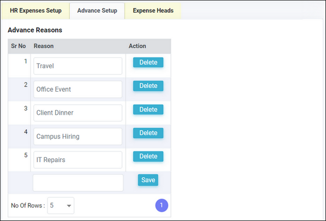 1. Reasons for advance can be updated in this table. If a reason has been used in a request it cannot be deleted.