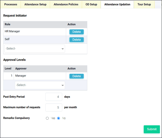 4. Maximum number of requests : this will limit the number of attendance updation requests which can be submitted in a month.