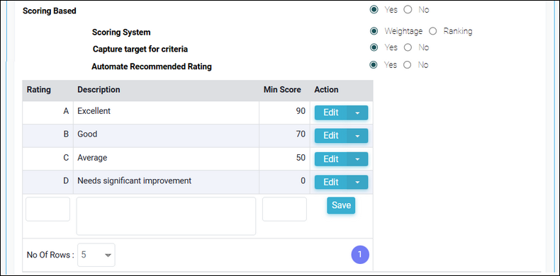 Scenario 1 - Scoring is Weightage based and Automated Rating is No