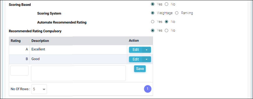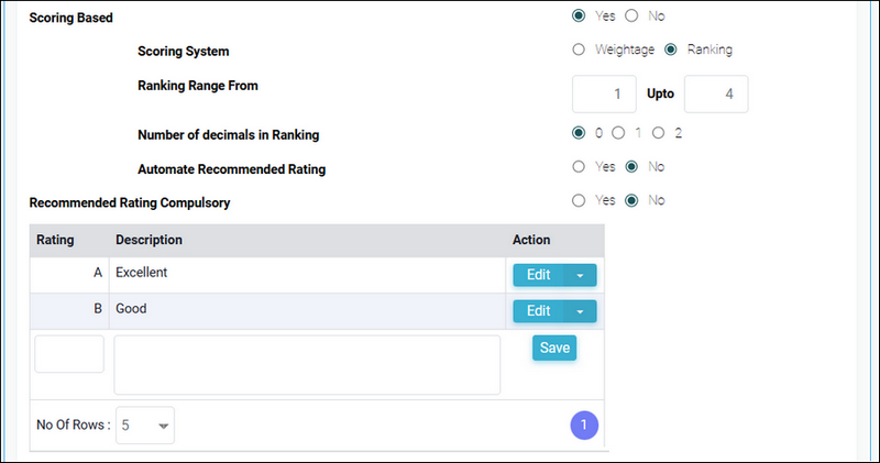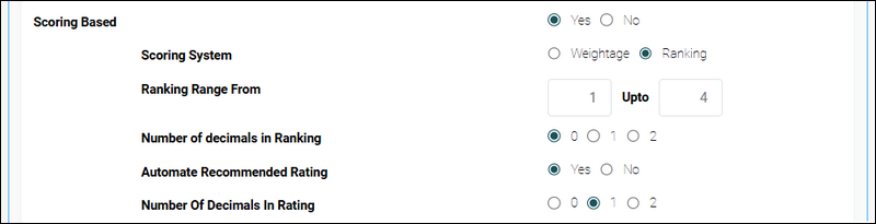 Note - if Scoring system = Ranking based and Automate recommended rating = Yes