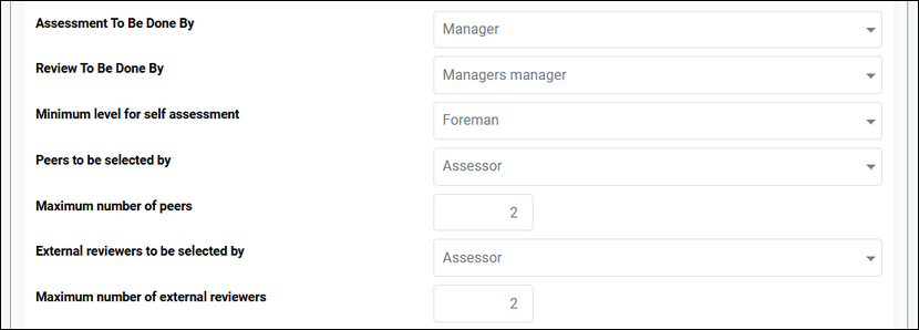- Peers to be selected by : you can select here who will map the peers against the employee record. Refer to the article on Role of Assessor and Reviewer during Performance Cycle for more details on how to map peers / external reviewers