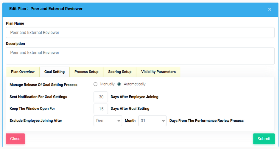upto Goal setting stage. If this option is given to the Performance Manager then