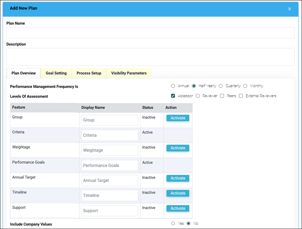 Menu Path : Setup > HR Setup > Performance > Plan Design tab