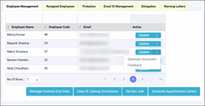 Letters" button, refer to the article on Bulk Generation of Appointment Letters for more details