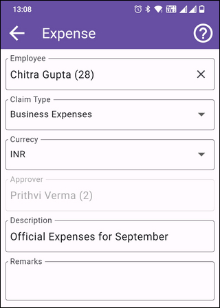 - Click on the "Add Expense Details" button to add expense line items. On tap a new page will open in which you can provide the details of expense as shown below.