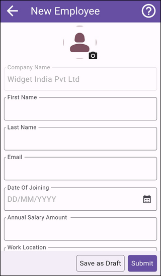 - Click on the camera icons and the Employee Photo icon to click the photographs of the employee and the supporting documents