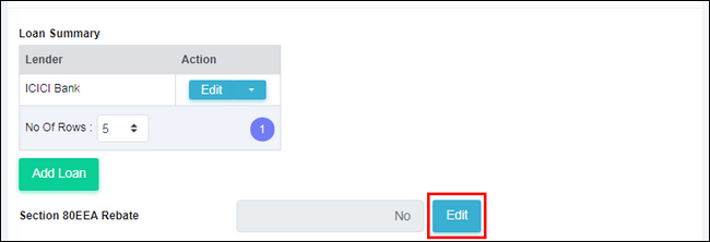 To declare details of 80EE click on the Edit button which will be visible to you if your loan is eligible for 80EE rebate based on the details declared in the loan.