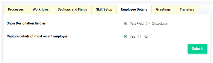 Please remember to include Work Experience as an activity mapped to Employee in Onboarding process setup to ensure that these inputs are taken during onboarding. Refer to the article on Managing most recent Employer details for more details.