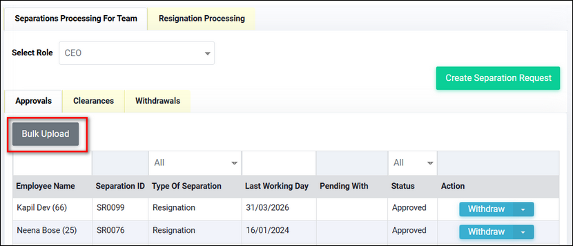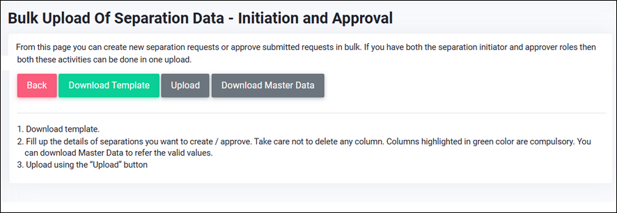 Initiators and Approvers of separation can use the bulk upload feature to create