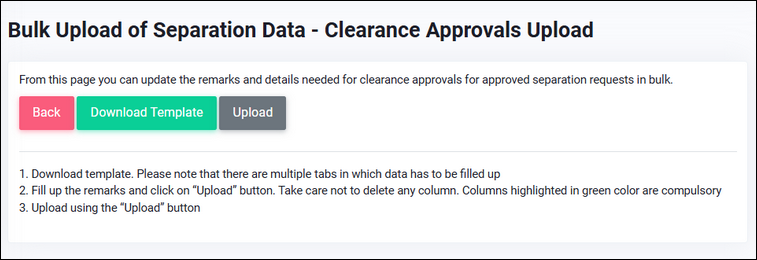If you have multiple roles like Department Head, Manager, IT Manager and there are pending clearance approvals against these roles the downloaded excel will show all the records mapped to you across these roles. Excel file might have more than one tabs. Fill up the inputs and follow instructions to upload the inputs.
