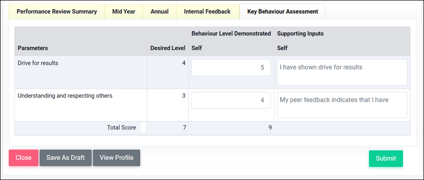 levels setup in KBA will be shown to them when the performance sheet is released