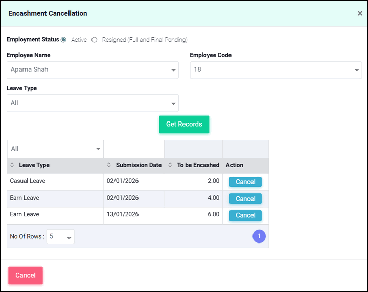 to the article on Payroll process - step 2 for more details on how leave encashment is paid during monthly payroll