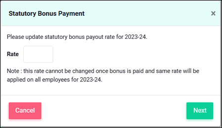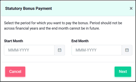 2. In the popup which comes select the period for which you want to pay the bonus. Selecting months in the current financial year.