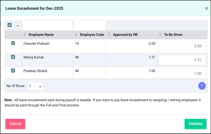 1. Leave Encashment payouts
