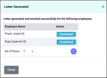 A popup will open, you can click on "Generate Relieving Letter" button to generate