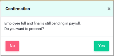 You will get an action button "Revert to Approved" as shown above. On clicking on this button you will get a reconfirmation popup. If Payroll is integrated then this action would also cancel the Full and Final record. If full and final has been updated as paid then you will have to first get the full and final cancelled.