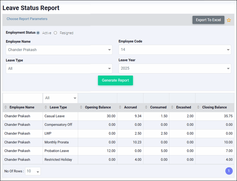 To see details of encashment you can refer to Report - Leave Encashment or Report