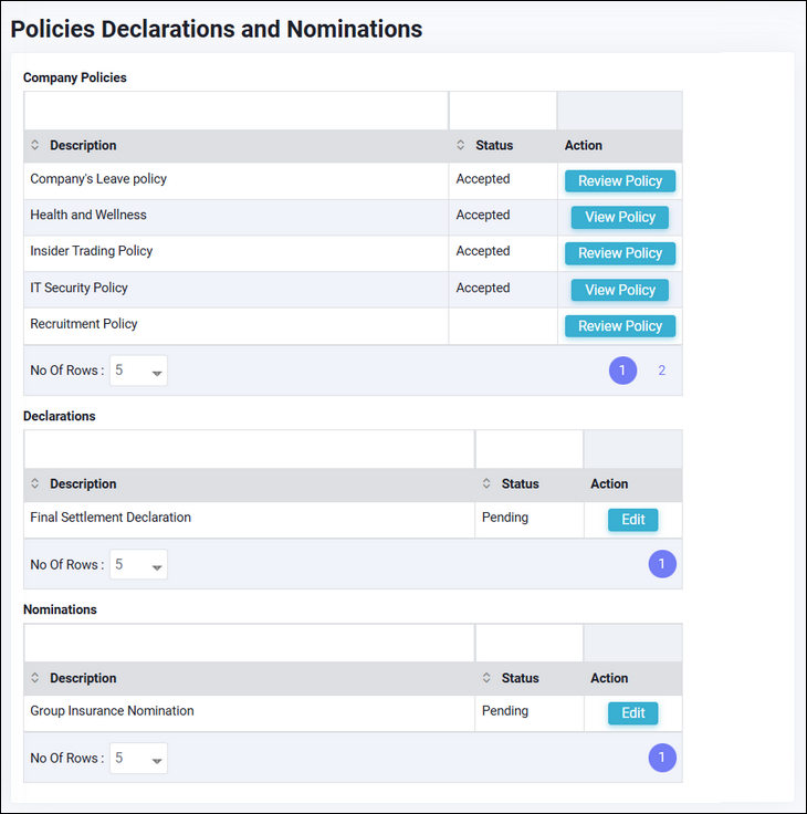 Menu Path : HRMS > My Profile > Tap on Policies and Declarations section