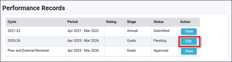 2. Go to HRMS > My Profile > Performance page. Double click on the row to