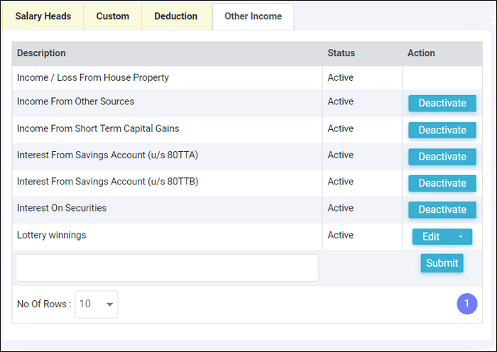 You can additionally create any custom other income heads. Income from all these
