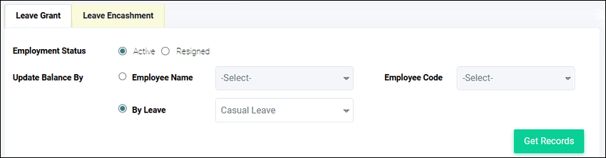 Menu Path : HR Manager > Leaves > Leave Grant tab