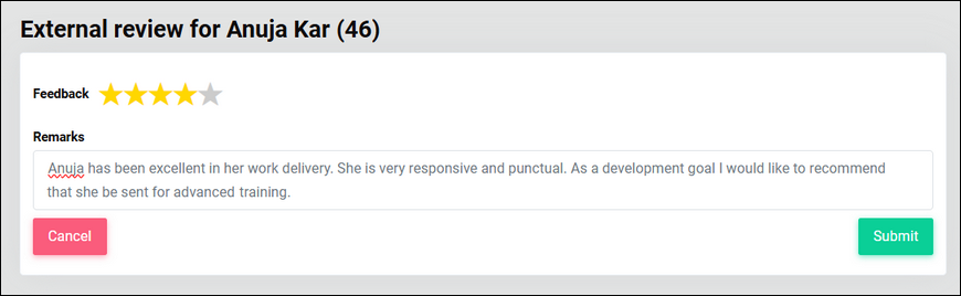 Performance review process can include feedback from peers (within company) and external reviewers (outside company). The option to do so can be enabled while making the plan in performance setup by the Administrator. Menu Path : Team > Performance ...
