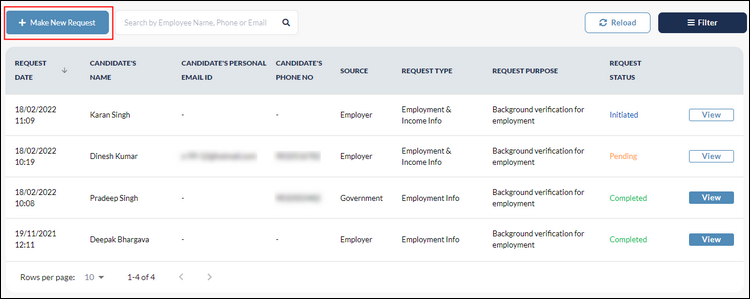 1. | Verification Purpose | Why the Request is being raised | Yes | “Background verification for employment” |